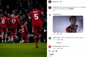 他也在賽后通過社媒曬出自己的滑跪慶祝照,并配文:“顯然對結(jié)果感到失望,但也為我在利物浦的首次雙響感到高興和自豪。”