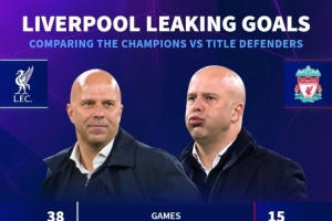 體育資訊12月7日訊 英超第15輪比賽,利物浦客場(chǎng)3-3戰(zhàn)平利茲聯(lián)。德國(guó)轉(zhuǎn)會(huì)市場(chǎng)統(tǒng)計(jì)了利物浦上賽季、本賽季的英超丟球數(shù)據(jù),并做出對(duì)比。