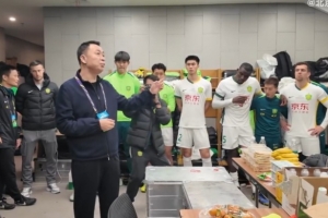 足協杯決賽賽前,北京國安足球俱樂部董事長周金輝來到球隊更衣室,為球隊送上鼓勵。