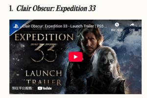 體育資訊12月07日訊 《光與影:33 號遠征隊》獲得《時代》雜志 2025 年度最佳電子游戲,去年該獎項得主為《龍騰世紀 4:影障守護者》。