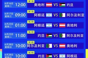 第3輪,約旦vs阿根廷,6月28日星期日10:00,達拉斯