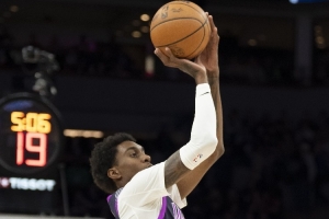 談及麥克丹尼爾斯中距離投籃的出色表現,芬奇表示:“他具備絕佳的身高條件,手感非常柔和,投籃弧線很高。他擁有一名優秀中距離射手的所有特質 —— 能穩定找到自己的投籃點,動作從容可控,彈跳能力出色,起跳后很難有人能干擾到他的投籃?!?/p>