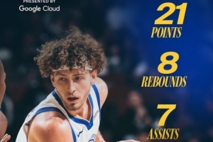 賽后,勇士官方曬出波杰姆斯基的數(shù)據(jù)海報,將其評選為本場最佳球員。