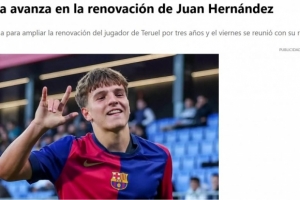 巴薩正努力與胡安·埃爾南德斯完成續約,作為B隊主教練貝萊蒂麾下的重要球員,埃爾南德斯的合同將于明年六月到期,俱樂部已為此工作數月,但目前尚未達成協議。不過,這名小將堅定地表示希望留在巴薩并且專注于在球隊中的成長。本賽季他已經出場13次,打進1球并貢獻了3次助攻,在貝萊蒂的球隊計劃中占據重要位置。