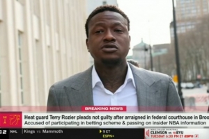 體育資訊12月9日訊 據(jù)ESPN法律分析師瑞安·史密斯報(bào)道,熱火后衛(wèi)特里·羅齊爾今日在布魯克林聯(lián)邦法院出庭,對(duì)非法體育博彩起訴書中的兩項(xiàng)聯(lián)邦指控表示不認(rèn)罪,他以300萬美元的保釋金獲釋。