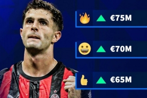 德國轉會市場預熱普利西奇的身價變化,最高可能達到7500萬歐元,最低保持6000萬歐元。