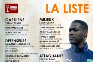 前鋒:瓦科安·巴約(烏迪內斯)、奧馬爾·迪亞基特(色拉格布魯日)、阿瑪德·迪亞洛(曼聯)、揚·迪奧曼德(RB萊比錫)、阿萊(烏德勒支)、菲利普·克拉索(巴黎FC)、巴祖馬納·圖雷(霍芬海姆)、扎哈(夏洛特FC)