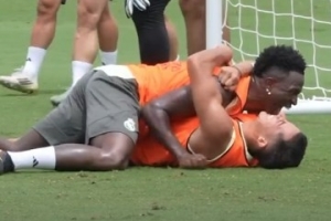 皇馬后衛巴斯克斯更新社媒,曬出隊內訓練片段。巴斯克斯接魔笛助攻鏟射破門,隨即維尼修斯第一個上前將其“壓在地上”慶祝,隨后他也被其他隊友包圍。