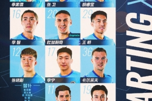 4-姜至鵬 8-周大地9-德·列昂索 13-彭鵬(GK) 14-趙石(GK) 21-南松 23-楊一鳴 28-張煜東 34-夏合扎提·吾加合買提 46-申桓銘 56-江唯一