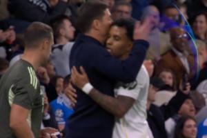 體育資訊12月11日訊 皇馬vs曼城,羅德里戈上半場破門,進球后一段時間轉播回放鏡頭,羅德里戈進球后擁抱了阿隆索!