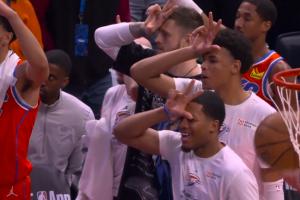 GIF-雷霆爆炸!!杰倫威壓哨三分轟進!