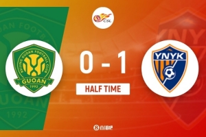 第30分鐘,云南玉昆右路攻勢,約尼查第一下傳中被擋回,隨后人群中將球一捅,葉楚貴點球點附近直接推射破門!云南玉昆客場1-0領先北京國安↓