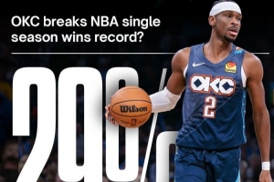 賽后預測機構Polymarket更新了雷霆打破73勝常規賽勝場紀錄的概率——29%。