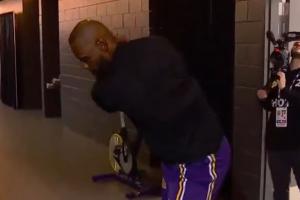 GIF-詹姆斯賽前練習(xí)高爾夫