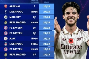 體育資訊12月11日訊 本賽季阿森納在歐冠6戰(zhàn)全勝,德轉(zhuǎn)也盤點了歐冠歷史前6場全勝球隊最終成績,其中皇馬、拜仁曾拿到冠軍,具體如下: