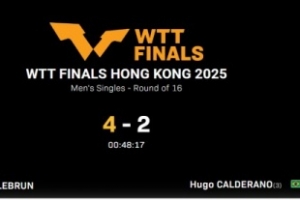 體育資訊12月11日訊 WTT中國香港總決賽男單,費利克斯·勒布倫4-2戰勝雨果·卡爾德拉諾,晉級8強。