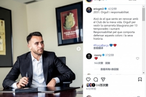 埃里克·加西亞社媒曬出續約照片,并寫道:“2031年,自豪與責任。”