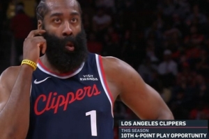 快船客場VS火箭,第四節(jié)哈登打進(jìn)3+1。轉(zhuǎn)播方統(tǒng)計,哈登本賽季已經(jīng)10次3+1,領(lǐng)跑全聯(lián)盟。