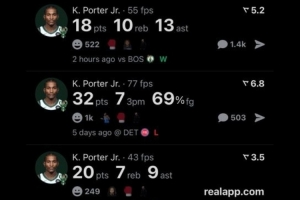 此役雄鹿后衛小凱文·波特高效全面,打了32分鐘10投6中,三分3中1、罰球8中5拿到18分10籃板13助攻1搶斷,正負值-6。