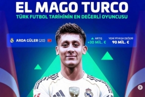 在本次更新前,德轉身價最高的土耳其球員是伊爾迪茲,身價為7500萬歐。