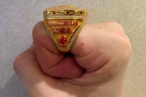 賽前,廣廈升起首面總冠軍旗幟,并頒發了總冠軍戒指。