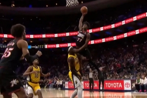 GIF-埃奇庫姆試圖隔扣西亞卡姆被犯規(guī)
