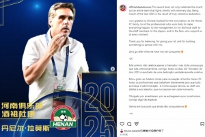 體育資訊12月13日訊 在獲得2025賽季中超最佳教練殊榮后,河南隊主帥拉莫斯更新社媒,感謝了團隊的努力。