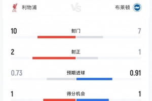 體育資訊12月13日訊 英超第16輪,利物浦主場對陣布萊頓,利物浦半場1-0領(lǐng)先,兩隊上半場數(shù)據(jù)如下(主隊利物浦在前):