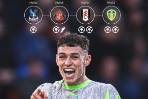 近4輪英超,福登一掃頹勢展現(xiàn)炸裂狀態(tài),4輪6球1助仿佛重回23/24賽季那個無所不能的“太子登”。