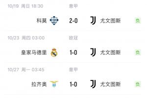 尤文曾在10月份遭遇科莫、皇馬、拉齊奧三連敗,此戰過后,尤文近11場取得7勝3平1負的戰績,目前球隊意甲排名第5,歐冠第17,意杯晉級8強。