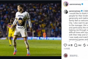 墨西哥美洲獅與拉姆塞解約,拉姆塞社媒寫道:“我想感謝墨西哥人民對我的友善與慷慨,讓我和我的家人在墨西哥城感受到如此溫暖的歡迎。我還要特別感謝主教練、教練組,尤其是醫(yī)療團(tuán)隊,在我受傷的艱難時期給予我的幫助。在他們的支持和努力下,我恢復(fù)了狀態(tài),為接下來的比賽做好了準(zhǔn)備,期待為美洲獅貢獻(xiàn)自己的最好表現(xiàn)。”