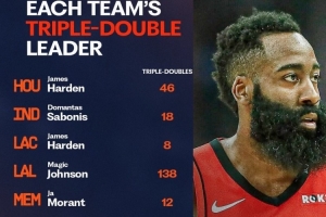 體育資訊12月16日訊 國外自媒體Enjoy Basketball統計了NBA各隊隊史上拿到三雙最多的球員。