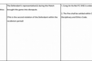 亞足聯官方表示,河內公安的行為損害比賽聲譽,違反亞足聯紀律和道德準則第50.1條,這是河內公安第二次違規,對該隊處以6250美元罰款,罰款應自本決定送達之日起30日內支付。