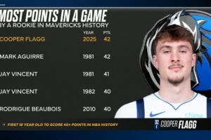獨(dú)行俠隊史新秀單場得分榜: