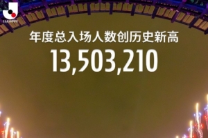 體育資訊12月16日訊 根據J聯賽官方統計,今年J聯賽年度觀眾總數達到了13503210人次,創歷史新高。