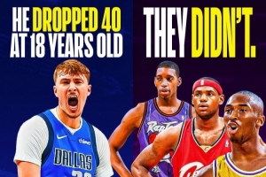 弗拉格(18歲360天)也成為唯一一個在18歲就砍下40+的NBA球員,即便是詹姆斯、科比和麥迪這樣的高中生天賦球員在18歲時也沒有達到過這一數據表現。