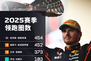 體育資訊12月17日訊 根據F1官方統計,維斯塔潘是今年領跑圈數最多的車手,他一共領跑454圈。