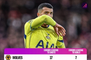 體育資訊12月17日訊 Opta統(tǒng)計(jì)了本賽季英超各隊(duì)失誤導(dǎo)致丟球的數(shù)量,并列出榜單,狼隊(duì)7球居首,熱刺、桑德蘭、諾丁漢森林5球次席。