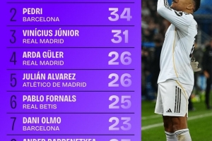 體育資訊12月17日訊 西甲運動戰(zhàn)創(chuàng)造機會排行榜出爐,姆巴佩47次高居第一,佩德里、維尼修斯緊隨其后。