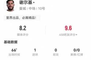 體育資訊12月18日訊 曼城在本輪聯賽杯2-0力克布倫特福德,謝爾基本場數據如下: