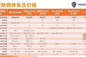 其中,2026賽季云南玉昆設(shè)立了1個(gè)冠名合作伙伴席位,參考價(jià)值3000萬元,而其他各檔贊助席位則從10萬-500萬元不等。