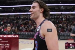 據統計,這是公牛在658天以來首次贏騎士,他們上場贏騎士可以追溯到2024年2月29日。