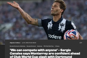 體育資訊7月1日訊 北京時間7月2日09:00,世俱杯1/8決賽多特蒙德將對陣墨西哥球隊蒙特雷。賽前,蒙特雷老將卡納萊斯接受了采訪。