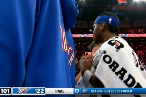 本場比賽,快船全隊出現29次失誤(數據統計28次+另有一次全隊失誤),僅6次搶斷;雷霆8次失誤,18次搶斷。