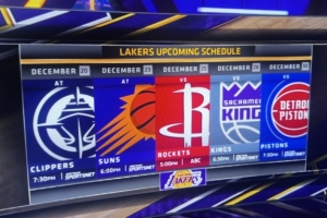 目前湖人19勝7負(fù),高居西部第三。接下來5場比賽,他們的對手依次是快船、太陽、火箭、國王、活塞。