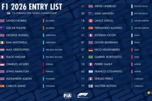 體育資訊12月19日訊 F1官方公布2026賽季車手車號(hào),新科車手冠軍諾里斯成為1號(hào)車手,維斯塔潘3號(hào),博塔斯77號(hào)。