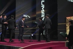 體育資訊12月19日訊 Gumayusi獲得年度AD獎,T1選手們給他送花