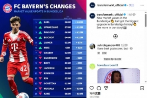 拜仁球員身價變化: