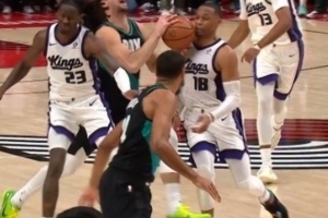 昨日NBA常規賽,開拓者加時134-133力克國王,加時賽最后時刻,阿夫迪亞強攻造成威少犯規,兩罰全中完成絕殺。