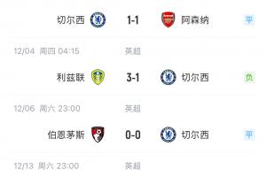 本場過后,切爾西5輪僅1勝積29分,落后榜首阿森納7分,身后4隊26分。